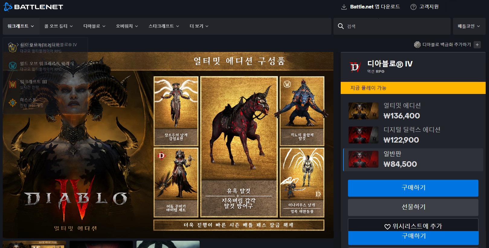 디아블로 4 구입처와 에디션별 차이