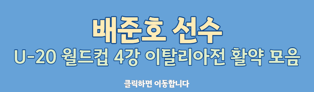 U-20 월드컵 4강전 이탈리아와의 경기에서 2:1로 아쉽게 패했지만 국민들의 가슴에 불을 지폈던 한 선수가 있습니다. 이탈리아의 수비를 뒤흔들며 위협적인 상황을 여러차례 만들어 상대팀 감독에게도 인정 받았던 배준호 선수입니다. 남은 이스라엘과의 3·4위전에서도 활약이 기대되는 배준호 선수에 대해 간단히 알아보겠습니다.